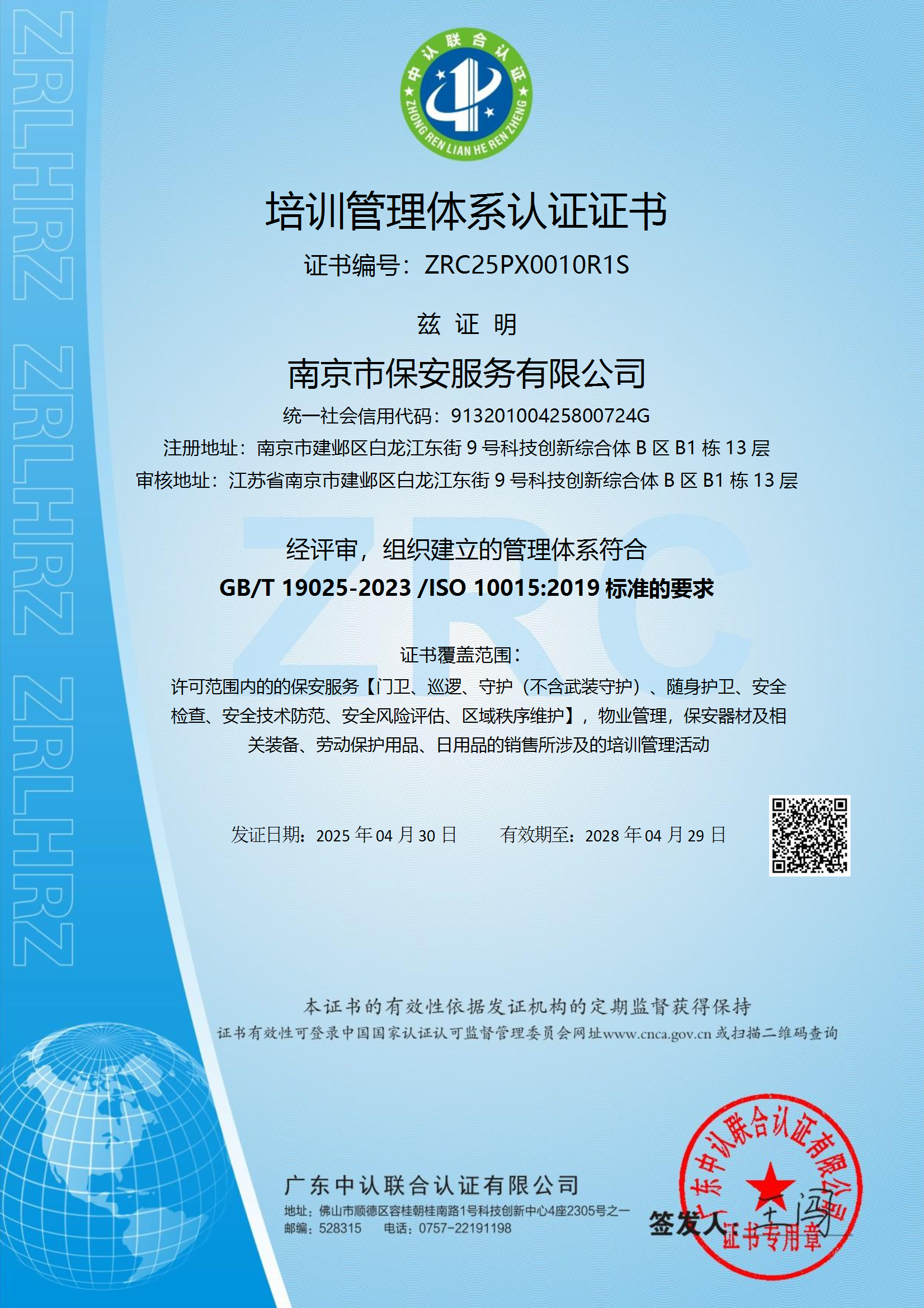 南京市保安服務(wù)有限公司(原南京市保安服務(wù)總公司)成立于1987年4月,是一個有著悠久安保經(jīng)營歷史和安保經(jīng)驗沉淀的大型國有保安企業(yè),現(xiàn)為中國保安協(xié)會常務(wù)理事單位,江蘇省保安協(xié)會常務(wù)理事單位,南京市保安協(xié)會副會長單位,江蘇省一級保安服務(wù)公司。